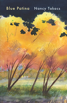 Blue Patina by Nancy Takacs Pages 103/54 poems Price: $15.00 (Washington State residents include 8.2% State sales tax) ISBN-13: 978-0-911287-73-8 Publisher: Blue Begonia Press To order: Blue Begonia Press, Inc. 311 Hillcrest Dr Selah, WA 98942 (509) 698-4456 Advance Praise: Compared with the gorgeous, sensual worlds inhabited by Takacs' speakers, the disorient- ing loveliness of Utah's landscape seems almost as plain as the word "desert" to easterners' ears. Through these formally varied, affectionate, and attentive lyrics, however, Blue Patina gently charts the overlapping territories of self, memory, and appetite its wise, flawed, intensely alert speakers inhabit every day, wherever they physically live in the present. Takacs' work doesn't idealize, but writes with "farmhouse aura inside skyscraper." This imaginative attitude encourages readers to recognize both "the flourishing" and "the deadweight" of daily life and the vitality of a busy, private mind: the everyday drama of the wicked neighborhood cat, the irresistible erotics of flannel, and the unexpected deviance of lavender, garlic, and lime. Takacs' poems show us what it is to be in love with places, with any place, but also to have the courage and wits to keep moving. ‐Elizabeth Savage Blue Patina. Nancy Takacs is in the shade of high desert canyon walls. She's quiet, steady, clear. She's resting her hand on her hip, running her eyes over rock darkened by sun and. dew and time. She's looking for and finding those telling scratches in the indigo, the petroglyphs, the earlier times and beyond. Her own times, all there in the present. Record- ed. The Jersey girl, her family, her friends, the neighborhood, the school and the church, the boys, the streets. The way out. All the way to this Utah map. The people, their meeting places, their times alone. The high desert. The life away, the waters of Superior, the forest, its creatures, the flowers and plants, the garden inside the fence line between the bear and the cabin door. Recorded. Clear scratches in the blue patina of the high desert. The desert varnish. Still, persisting. Hard earned, hard edged, carefully etched. She's forward looking. There's more up canyon. ‐Barry Grimes Besides being one of the best kept secrets in Rocky Mountain literature, Nancy Takacs is genuinely one of the most generous and very most talented poets I have ever read. When she finds her way into an image, a drift of figurative language, or a crackling story, she bulldoggedly gets her teeth into it, never lets go until it thunders, and shakes it until it gives up all its secrets, calls out calf rope, and says I give. She's just flat that good. And yes, as a matter of fact, yes, I would take this book with me to the deserted island for my end of life hermitage. For more information on that topic as well as my opinion on whether you should read this book, please consult the closing sentence of James Joyce's ULYSSES. Yes. ‐David Lee About the Author: Nancy Takacs is the author of three chapbooks, Pale Blue Wings, Juniper, and Wild Animals, and a full-length book, Preserves. She is a former creative writing professor and wilderness studies instructor at the College of Eastern Utah in Price, and has, for the past decade, worked with inmates, seniors, and children, for the Utah Arts Council's Artists in Education program. A recipient of the 2013 Sherwin W. Howard Poetry Award from Weber: a Journal of the Contem- porary West, the WFOP Kay Saunders New Poet Prize, several writing awards from the Utah Arts Council,and the Nation/Discovery Award, she holds an MFA from the University of Iowa. Originally from Bayonne, New Jersey, she lives in Wellington, Utah, and in Bayfield, Wisconsin, near Lake Superior, with her husband and two dogs. From the Book: Yoga Class by Nancy Takacs I fear parking lots, malls, and the sprawl of furniture stores in Duluth. I fear lonely roads, rest stops. A family sits down now to a supper of tangy lettuce and organic beans. Beth tells us to be good to our feet. She asks us to tug on each toe, make a fist to knead our arches. I think how once I caught Delicate Arch throwing its arm around the Rabbit Moon. I like it when the moments fall gently into one another, end up on some island with no human footprints and many bear. I want to know the tall grasses swaying with punk-like tops that sprout small silver crowns and the short grasses like waterfalls that erupt into feathers. I'm back at the lemonade stand where a boy showed me his clay figurines of a fruit bat and a sloth. Today I feared the quilt ‐ the black one inlaid made by a great-great grandmother, with her postage stamps of red taffeta and cotton garlands ‐ will flutter into nothing. I watched my cat stalk the lizard, fed my dog her favorite: lima beans. Alice Miller says over and over how shame kills. I fear how the spirit might never revive when cruel words as well as hands crease it with discipline. I don't fear the long portage or the sticky mouths of ticks, but how the earth is losing itself, the spin of it beyond those who are chopping wood, putting up clothes lines, riding their bicycles uphill to town. Beth says we're done with our shoulders and our arms. Now we must try to do hand stands, head stands so the blood will come to our hearts. Previously published: Sugar House Review